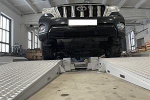 Конструктивные особенности новой модификации универсального диагностического комплекса видны сразу: стенд супернизкий, с укороченными аппарелями, установка моторов и датчиков сбоку и т.д.